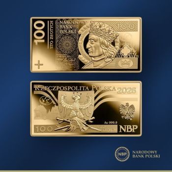 Narodowy Bank Polski wprowadza do obiegu złotą monetę „Banknot o nominale 100 zł” z serii „Polskie banknoty obiegowe”.