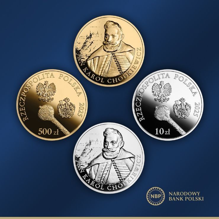 Warszawa, 22 października 2025 r. – Narodowy Bank Polski poinformował, że od jutra będą dostępne w sprzedaży złote i srebrne monety kolekcjonerskie „Jan Karol Chodkiewicz” z serii „Hetmani Rzeczypospolitej”.