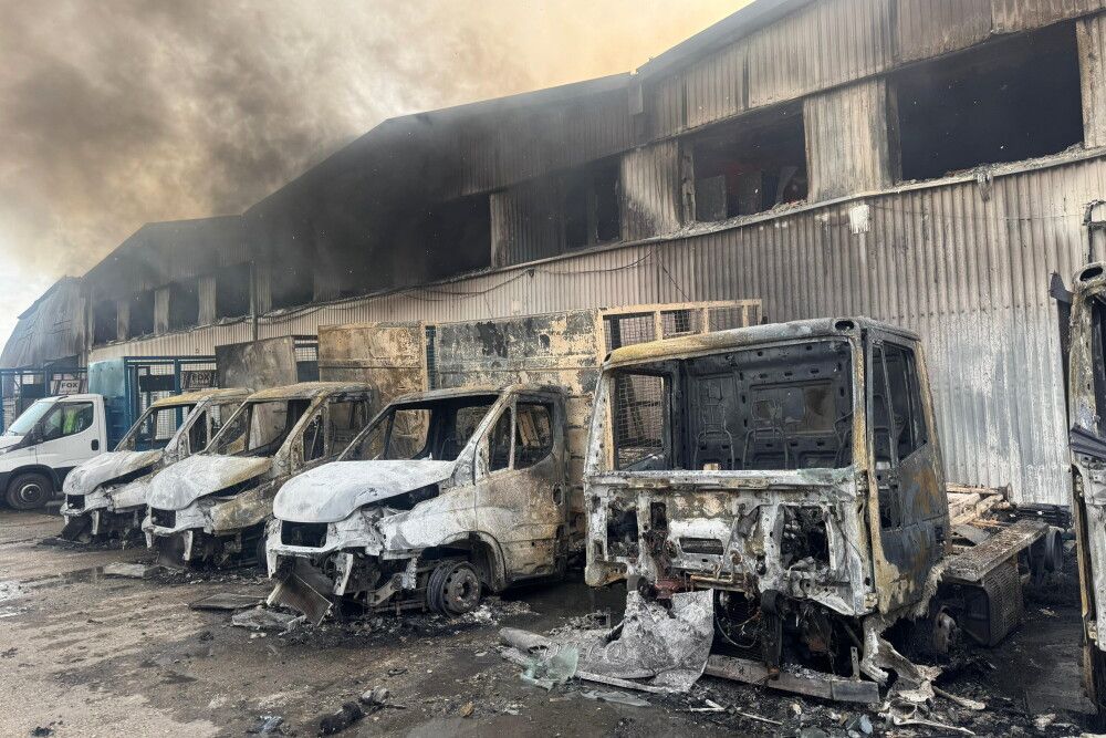 – Pożar wyszedł na zewnątrz obiektu i objął co najmniej pięć pojazdów służbowych zaparkowanych bezpośrednio przy magazynie – dodał strażak.