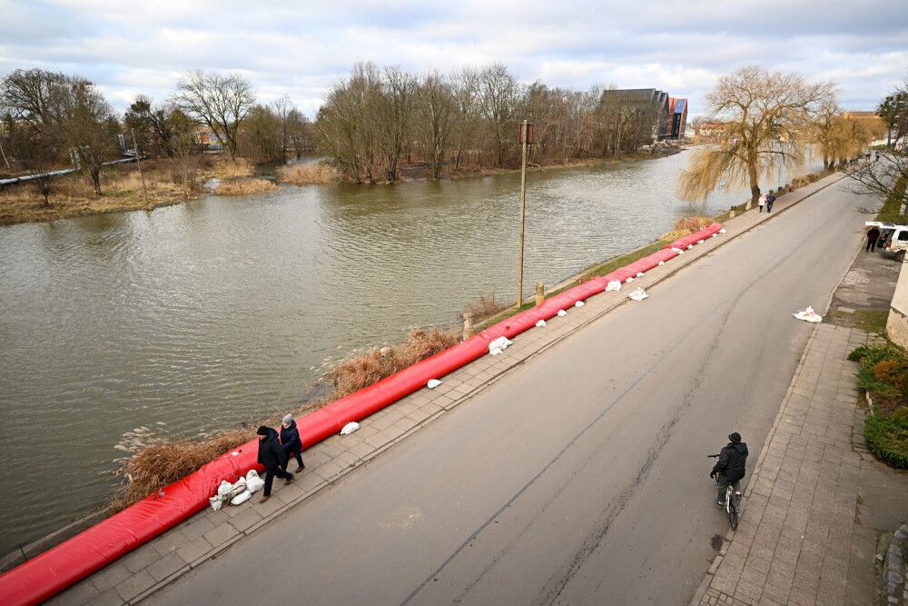 Służby miejskie w sobotę wieczorem rozłożyły na Bulwarze Zygmunta Augusta 50 metrów rękawów przeciwpowodziowych, a na przeciwległym brzegu - 30 m; umocniono je workami z piaskiem.