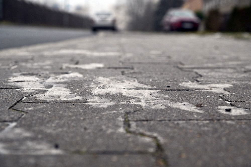 Szczecin, 12.01.2022. Marznący deszcz i gołoledź w Szczecinie. Chodniki w wielu miejscach pokryły się warstwą lodu. Instytut Meteorologii i Gospodarki Wodnej ostrzegł przed marznącym deszczem i trudnymi warunkami drogowymi w dziewięciu województwach. (mb/jm) PAP/Marcin Bielecki