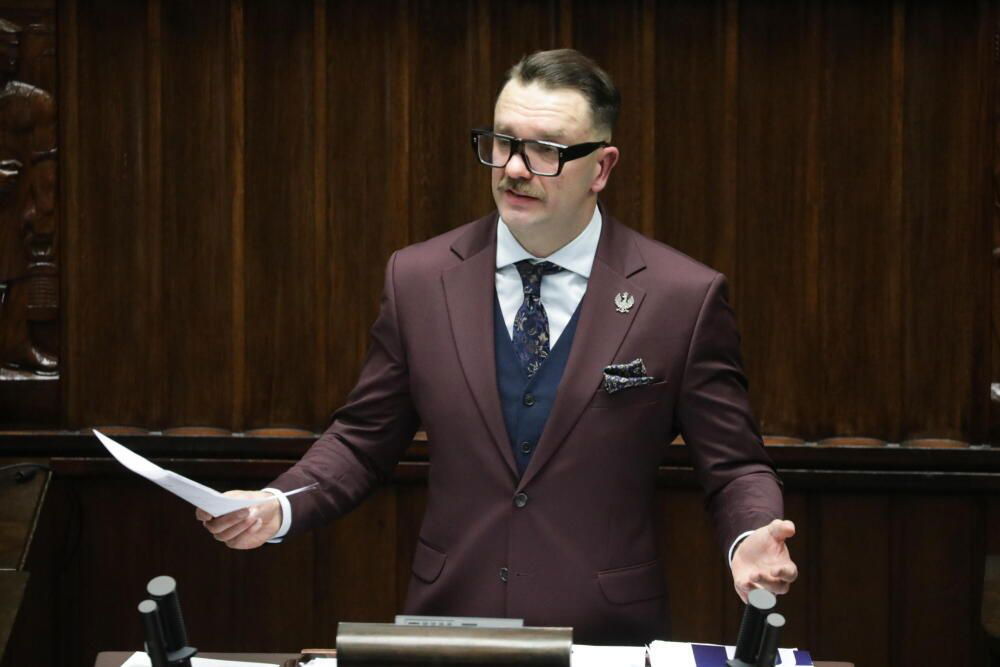 Warszawa, 05.12.2024. Poseł PiS Łukasz Mejza na sali obrad w drugim dniu posiedzenia Sejmu w Warszawie, 5 bm. W harmonogramie obrad izby znalazło się m.in. sprawozdanie Komisji o rządowym projekcie ustawy zmieniającej ustawę o zmianie ustawy o prawie autorskim i prawach pokrewnych oraz ustawy o grach hazardowych. (amb) PAP/Tomasz Gzell