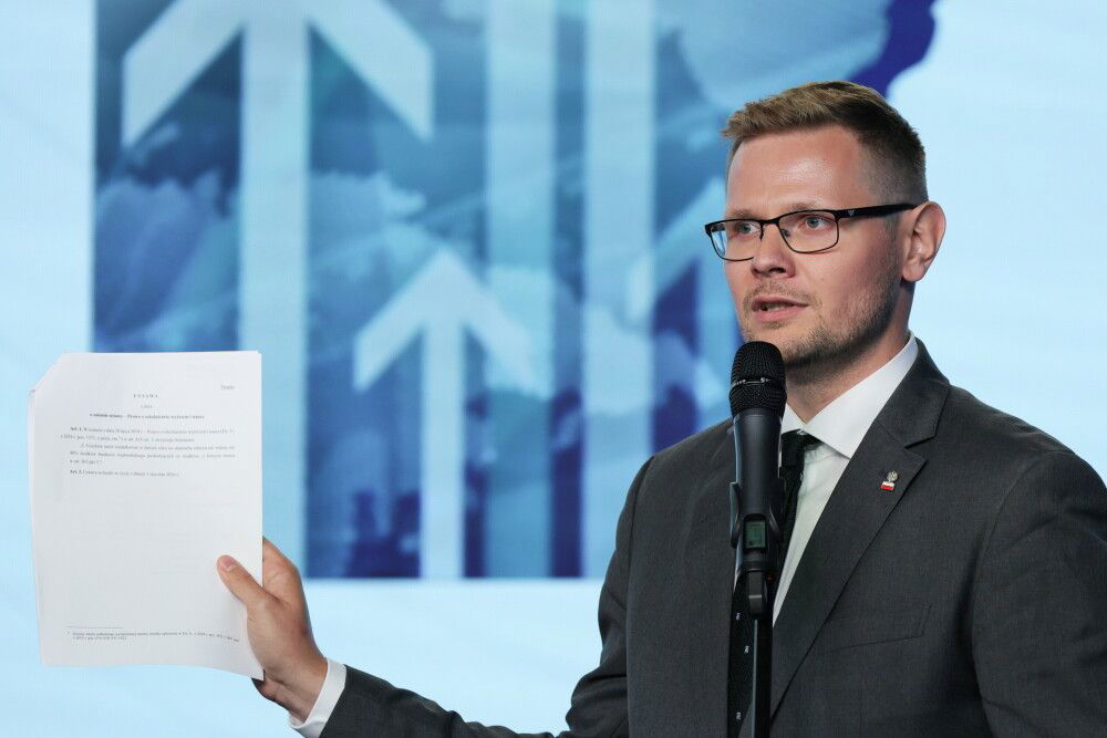 Warszawa, 24.07.2025. Posłeł Prawa i Sprawiedliwości Michał Woś na konferencji prasowej w siedzibie ugrupowania w Warszawie, 24 bm. (jm) PAP/Paweł Supernak